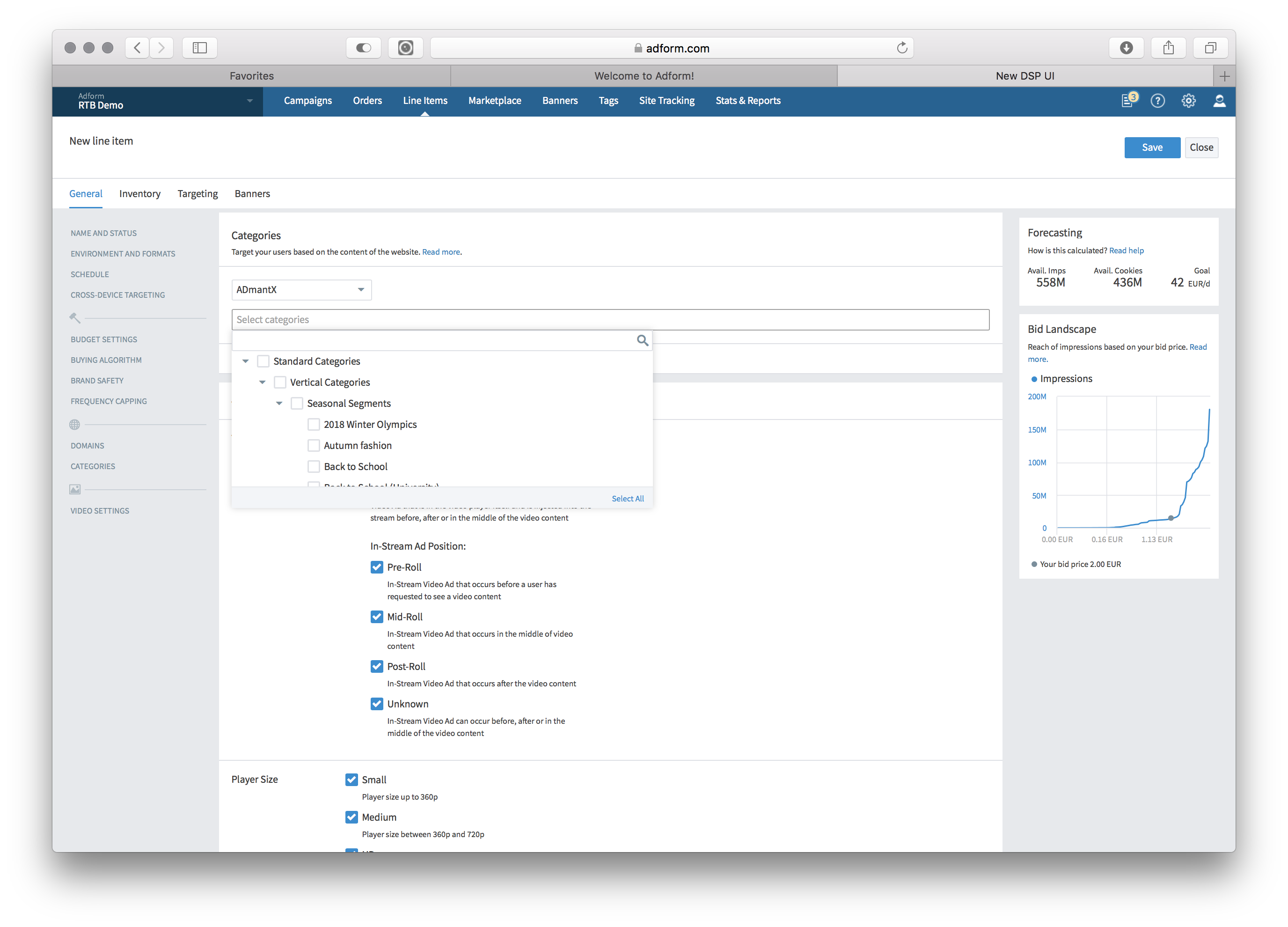 Here the Line Item view on Adform: