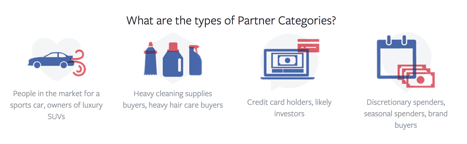 Partner Categories, launched in 2013, was a partnership between Facebook and major data brokers, that allowed advertisers to use offline and third-party data as a targeting on Facebook.