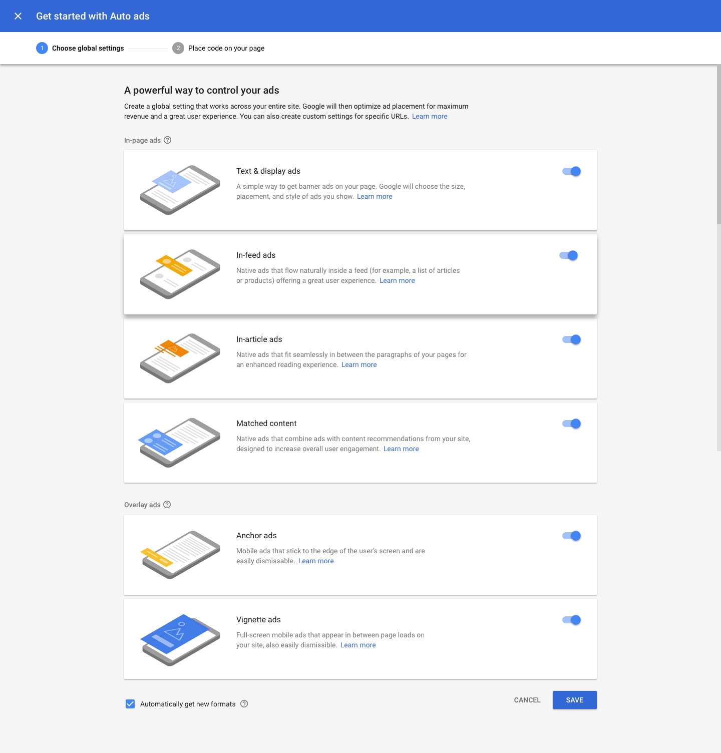 Google AdSense Auto ads: "let Google take care of the rest"