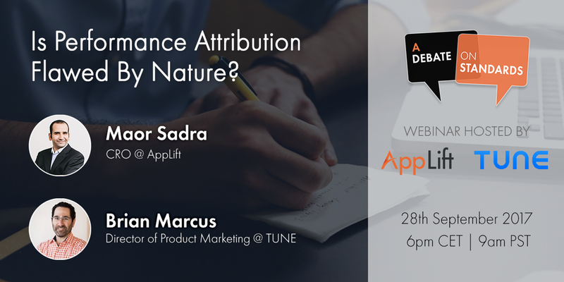 Tomorrow, Thursday, September 28, 2017, 6:00 PM – 7:00 PM CEST, Maor Sadra, CRO @ AppLift, and Brian Marcus, Director of Product Marketing @ TUNE are giving a free webinar about Performance Attribution.