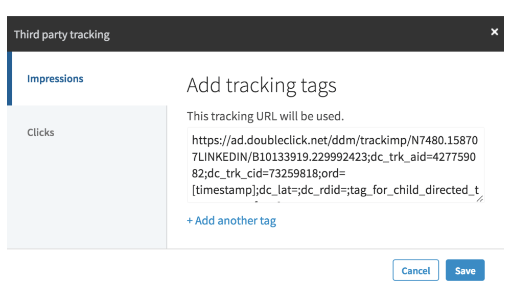 Add impression and clicks tags, and hit “Save”. The tags for carousel and video campaign go here as well.