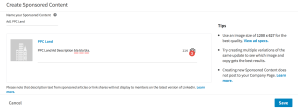After, you will be able to create the ads. The specs for the ads are an image of 1200 x 627 px and a description of 150 characters. To create an Ad you need to associate your Linkedin Company page with the Ad. The native ad can have a button to follow the page or not; it is optional. See here the example: