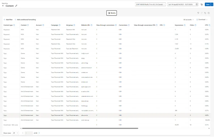 Microsoft released a content targeting report alongside the general availability announcement. The reporting functionality enables advertisers to understand where ads serve across content categories and Microsoft properties, providing insights for optimizing future campaign strategies based on content performance patterns.