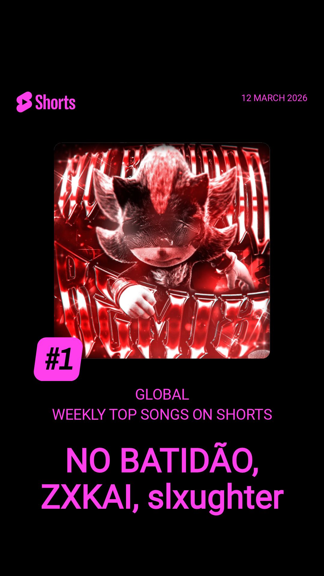 The numbers from YouTube's weekly music charts covering March 6 to 12, 2026 tell a story that a few years ago would have seemed implausible: a Brazilian phonk track produced by two relatively unknown artists has spent 19 weeks as the most-used song on Shorts globally, and that Shorts dominance directly corresponds to the track holding the number one position on the global songs chart. The relationship is no longer incidental. According to the data published by YouTube, "NO BATIDÃO" by ZXKAI and slxughter accumulated 38,375,438 views during the tracking period, retaining the global songs number one for a second consecutive week after temporarily surrendering it to BLACKPINK's "GO" the week prior.