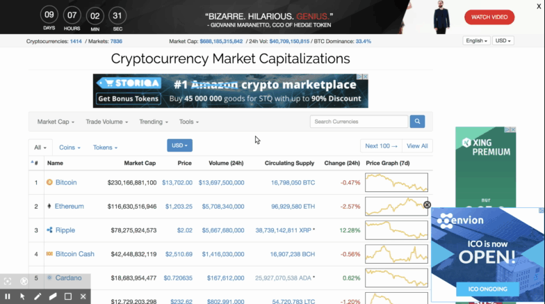 On CoinMarketCap, readers are able to find the cryptocurrency market capitalization, the cryptocurrencies, the markets, the market cap, volume, and bitcoin dominance. A lot of btc charts. And a top of the market cap bitcoins: Bitcoin, Ethereum, Ripple, Bitcoin Cash, Cardano, Litecoin, NEM, Stellar, IOTA and EOS.