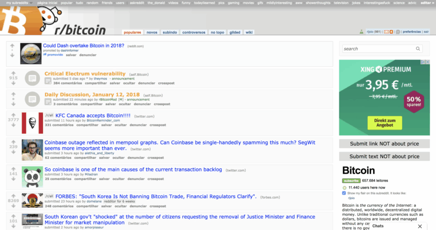 Subreddit Bitcoin is a community about the "currency of the internet".
